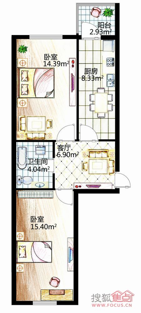 2室1厅1卫-2号楼/3号楼/15号楼53.33平米两居