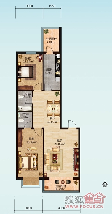 2室1厅2卫-3号楼F