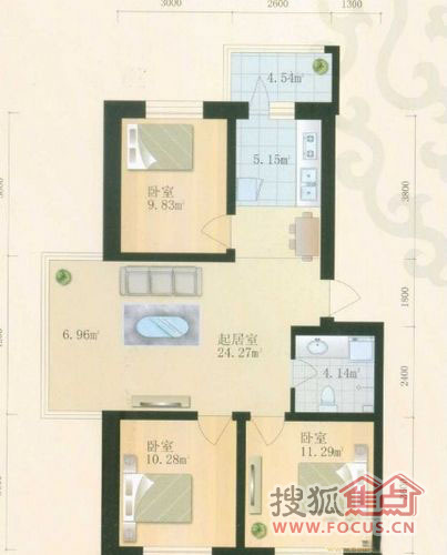3室1厅1卫-金都幸福里三室一厅一卫建筑面积108.47㎡