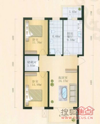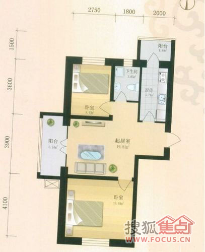 2室1厅1卫-金都幸福里两室一厅一卫建筑面积91.36㎡