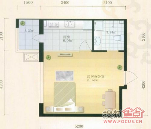 1室1卫-金都幸福里一室零厅一卫建筑面积45.47㎡