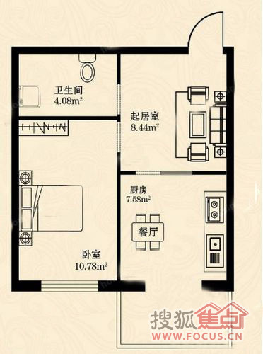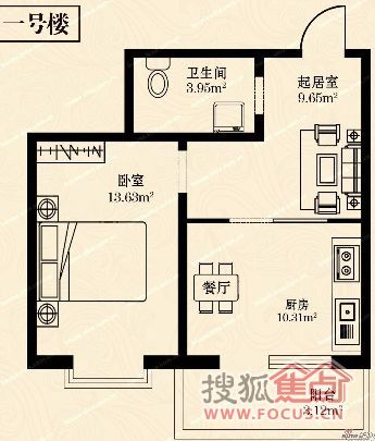 1室1厅1卫-金都府邸1号楼一室一厅一卫建筑面积57.19㎡