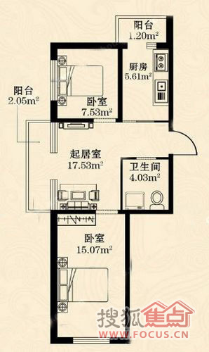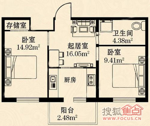 2室1厅1卫-金都府邸6号楼两室一厅一卫建筑面积70.19㎡