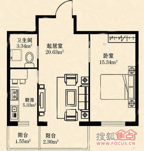 1室1厅1卫-金都府邸5号楼一室一厅一卫建筑面积51.71㎡