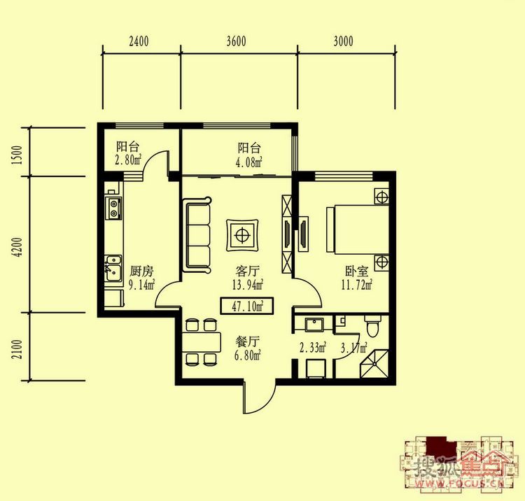 1室1厅1卫-先锋领地一室一厅一卫47.10㎡