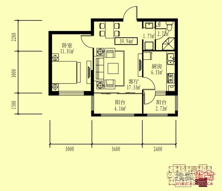 1室1厅1卫-先锋领地一室一厅一卫39.94平方米