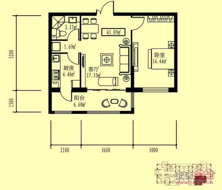 1室1厅1卫-先锋领地一室一厅一卫41.09㎡