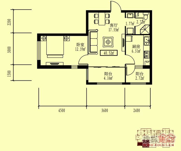 1室1厅1卫-先锋领地一室一厅一卫40.52㎡
