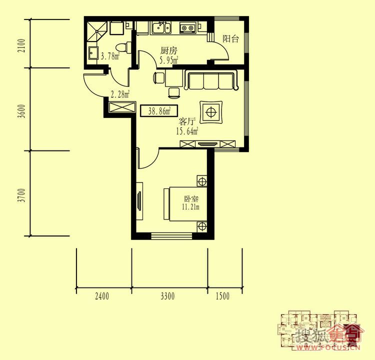 1室1厅1卫-先锋领地一室一厅一卫38.86㎡