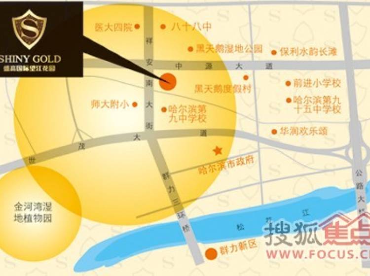 盛高国际望江花园,由哈尔滨·盛高置地房地产开发有限公司开发建设(哈尔滨·盛高置地房地产开发有限公司隶属于上海天威投资有限公司),项目位于松北区中源大道与祥安南大街交汇处,是集住宅、SHOPPING MALL、独立商业及相关配套于一体的高品质社区。社区规划用地面积5.7万平方米,总建筑面积近20万平方米(其中住宅建筑面积12万平方米,地下车位面积4万平方米,商业建筑面积4.3万平方米)。盛高国际望江花园分为二期开发建设,项目一期开发1#、2#和5#。预计7月份开工。2013年6月交付使用。