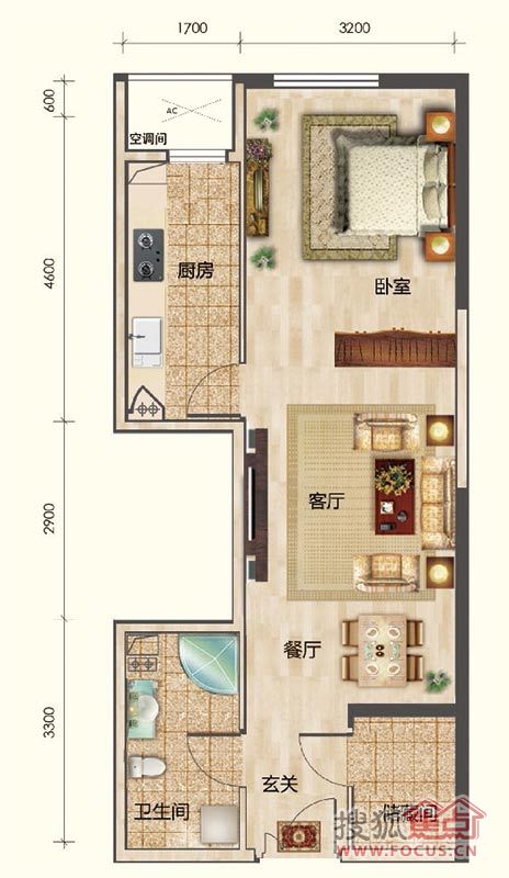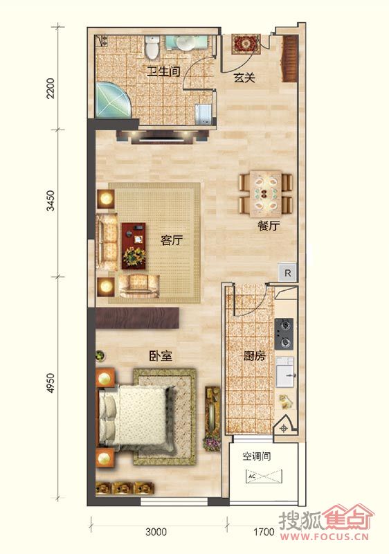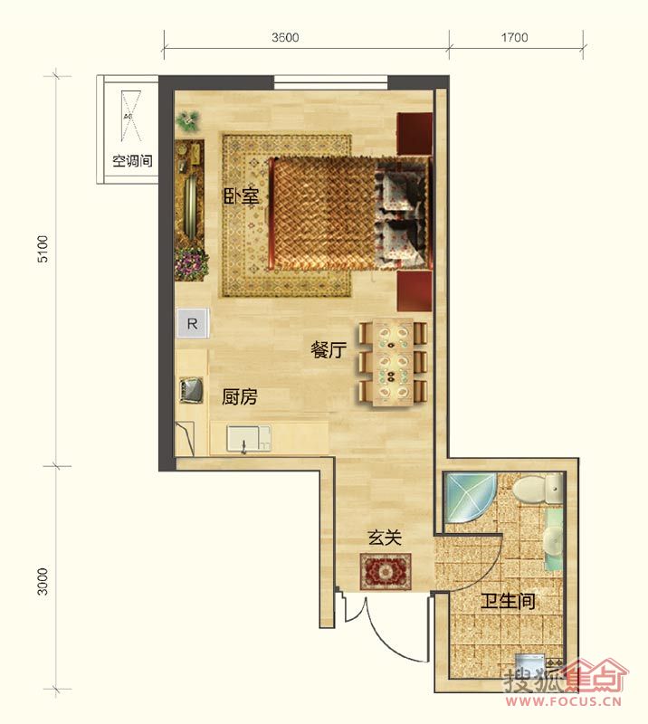 1室1厅1卫-公寓1#楼F