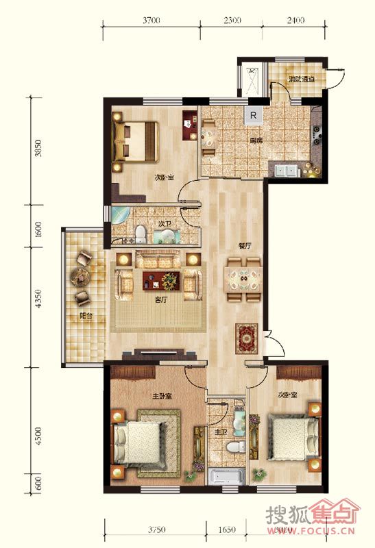 3室2厅2卫-住宅2#楼A