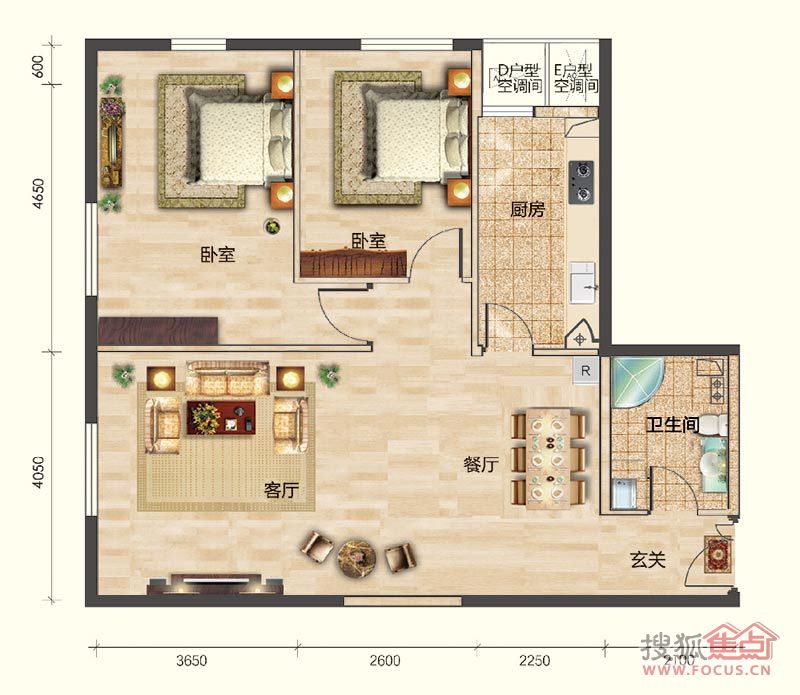 2室2厅1卫-公寓1#楼D