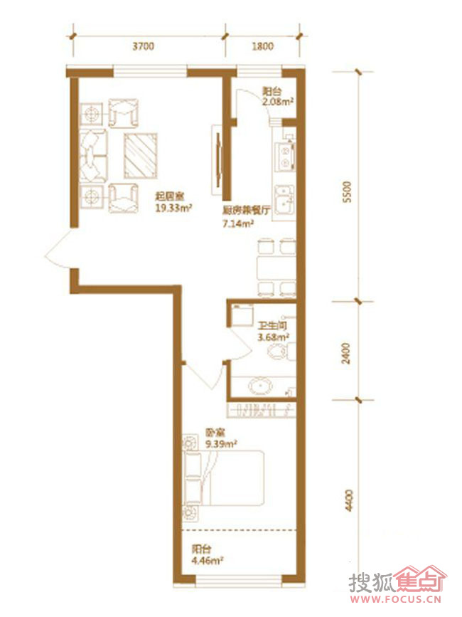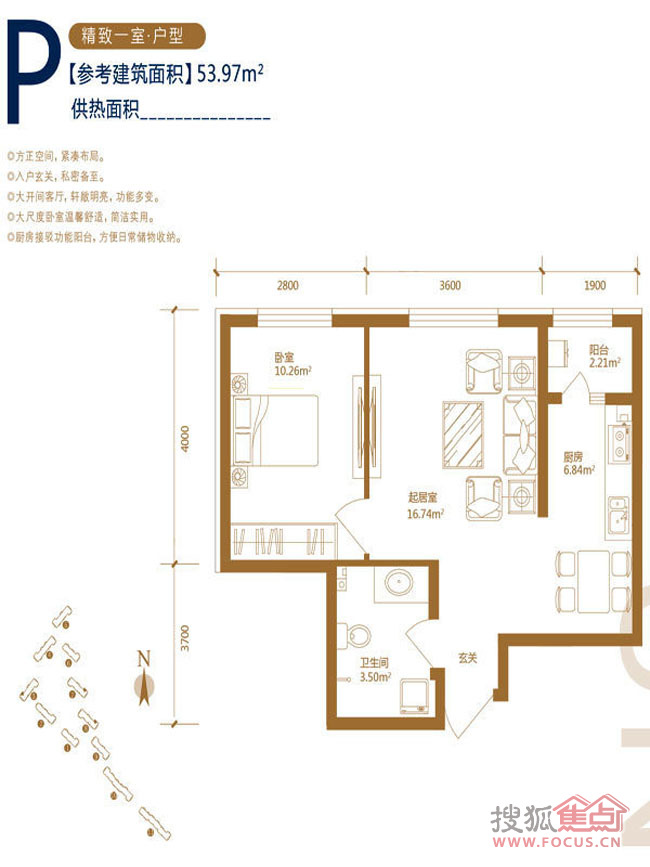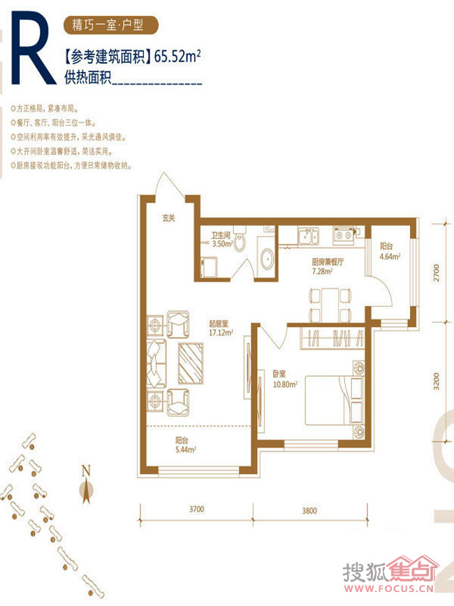 1室1厅1卫-一室一厅一卫一厨65.52㎡户型