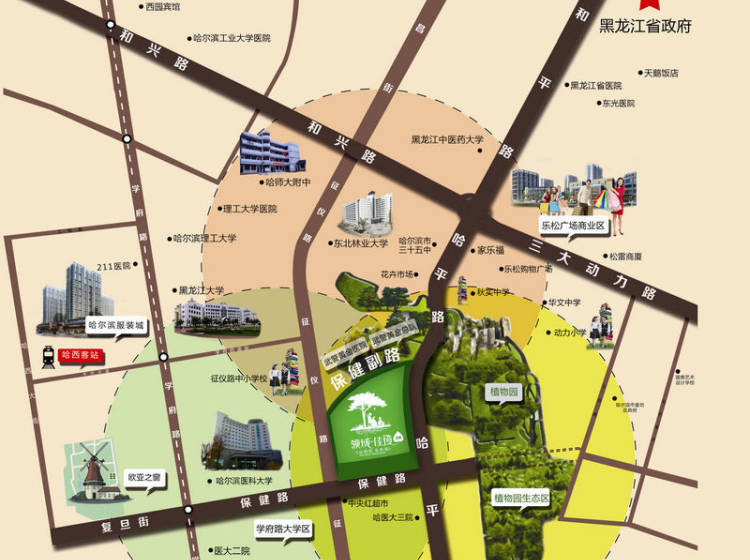 领域佳境紧邻学府大学城,(东北林业大学、哈尔滨理工大学、哈尔滨医科大学、黑龙江中医药大学)等,教育配套更是毋庸置疑,人文气息非常浓厚。
