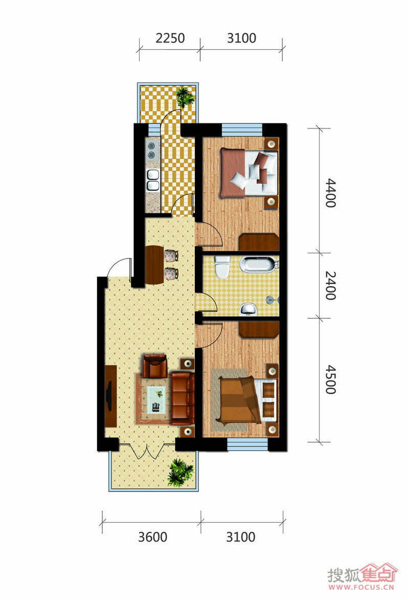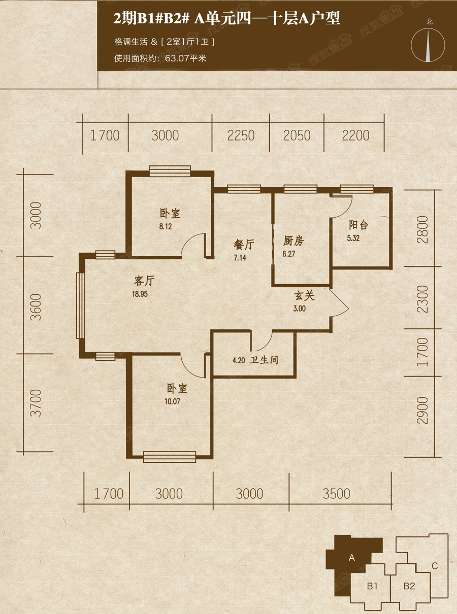 2室2厅1卫-二期B1#B2# A单元4-10层A户型