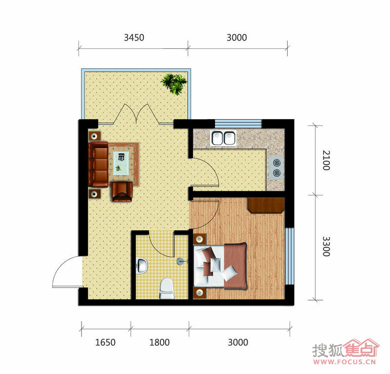 1室2厅1卫-二期B1#B2# A单元4-10层B1户型