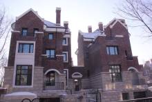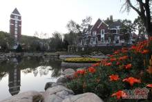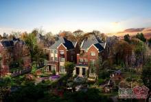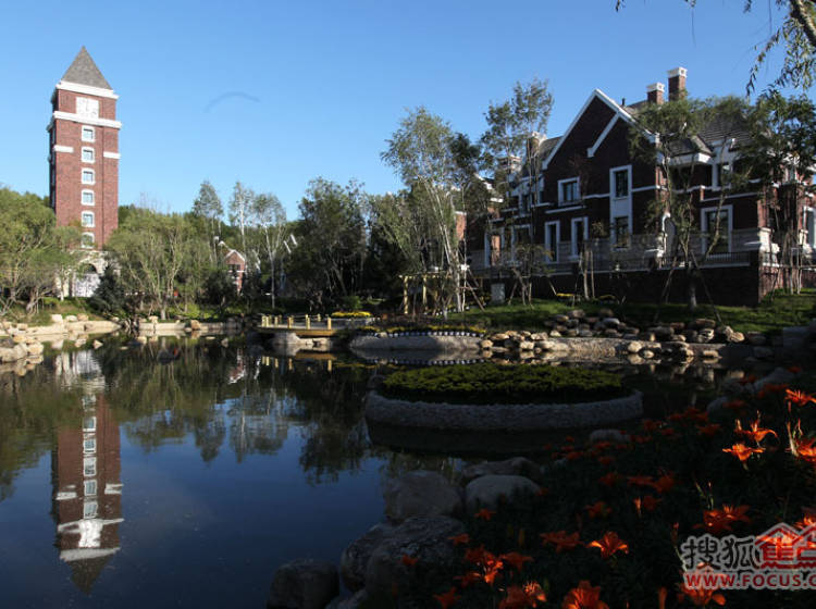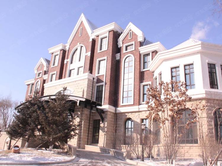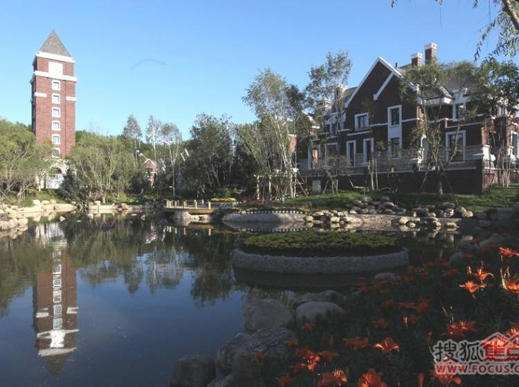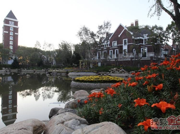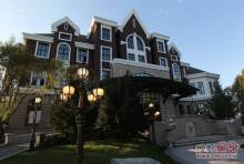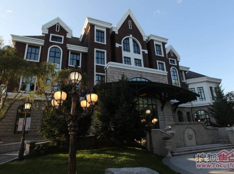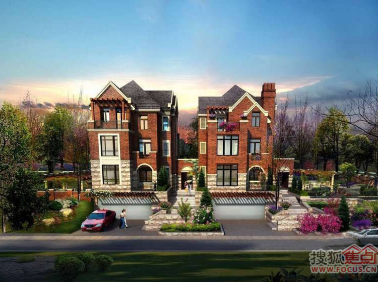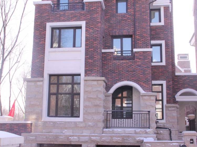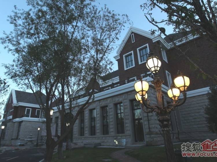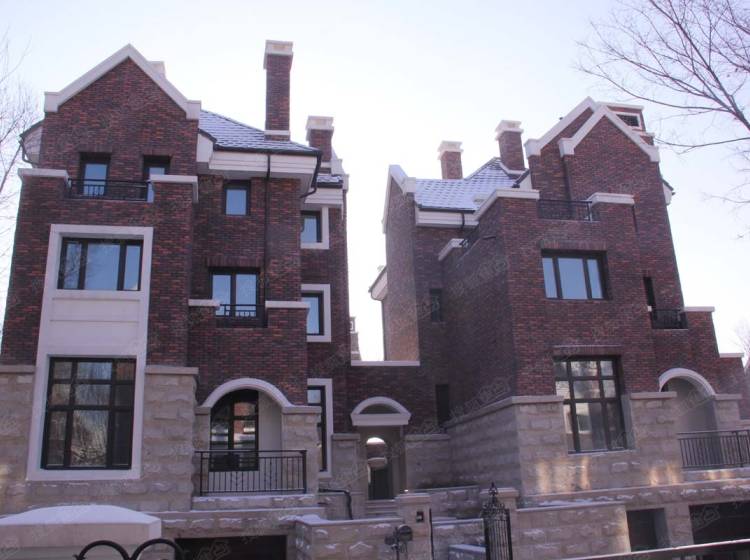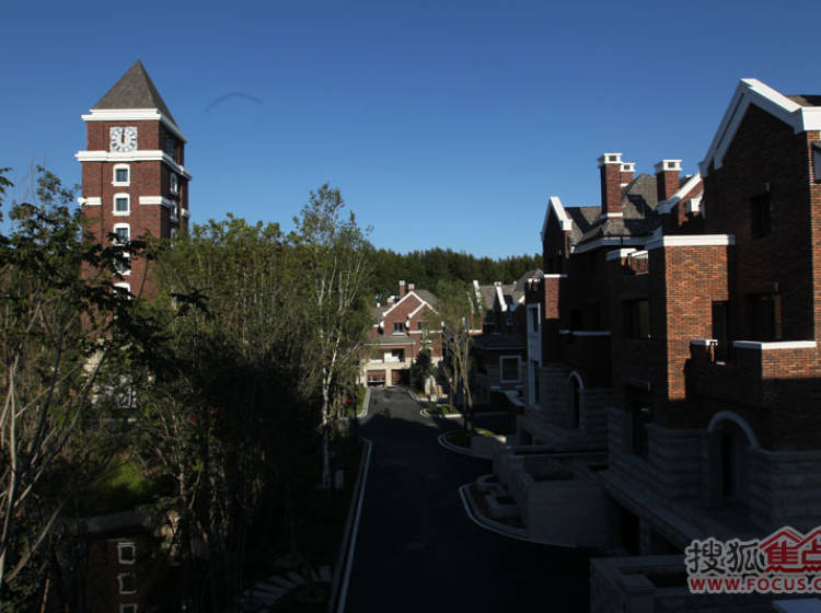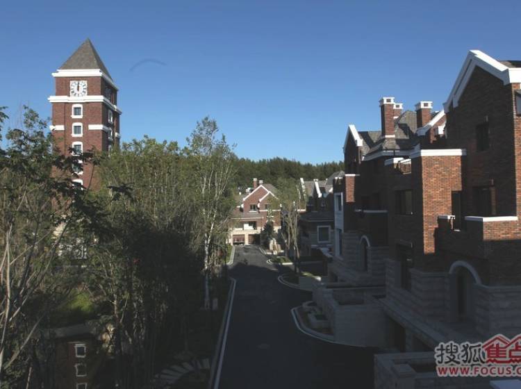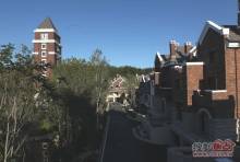 半岛世家建筑风格为英国都铎风格,深褐色稳重的建筑外墙、具有多元视觉意趣的尖塔坡屋顶、矮烟囱、老虎窗等细节。。