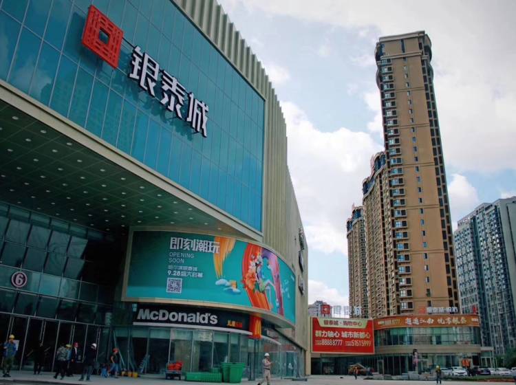 银泰城悦坊位于群力大道、融江路、群力第二大道围合处,与银泰自持20万平方米商业MALL紧紧相连,且内部相通,共享客流。商街全长400米,地上两层,共3万平方米,有五个主入口,让商街内部没有死角,无论从哪个方向过来,都可以进到商街内部,实现与商业MALL客流共享。