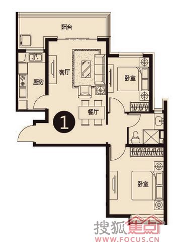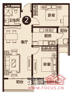 2室1厅1卫-100.75平米两居
