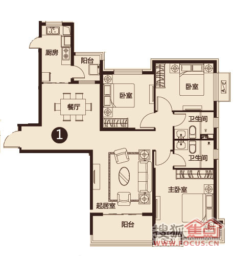 3室1厅2卫-126.88平米三居