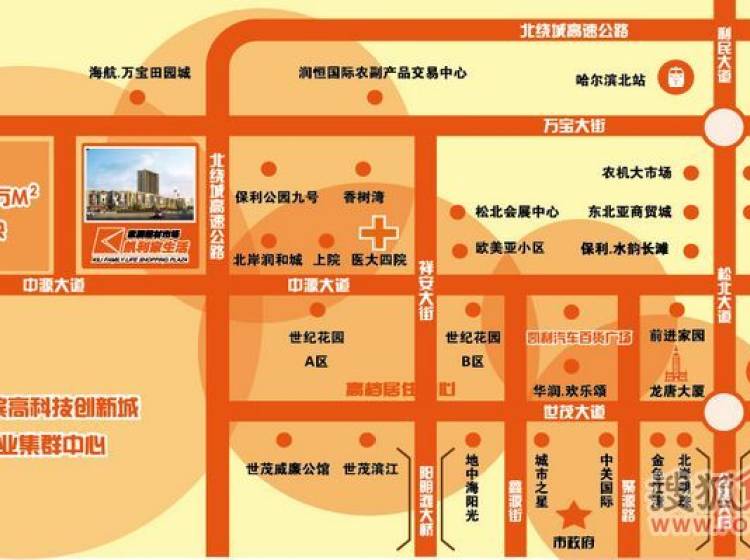 位于松北区万宝大道,紧邻江北利民开发区、呼兰区,靠近哈大高速出口,国道及西三环线。