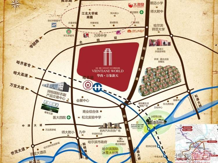 华尚万象新天项目坐落在江北城市级交通枢纽—哈尔滨北站东侧是黑龙江省华尚房地产开发有限公司携手南通四建集团,由加拿大TOPWAY建筑设计事务所等业界著名团队潜心打造的64万方洲际生活区。项目紧邻规划中的哈北站、地铁二号线始发站、长途客运总站、百万平北站商圈,ART-DECO建筑、欧陆风情景观、8米薄板全功能刚需户型。 项目规划的用地面积约24万平方米.总建筑面积约64万平方米,住宅建筑面积约58万平方米,商业面积约6万平方米,由40余栋高层、小高层和别墅错落组成。 华尚万象新天首创超薄8米板式建筑,开发商以损失建筑面积的诚意换取居住功能的提升,让小面积的户型真正实现全功能的居住享受。小区规划成熟先进,环境优美,绿化率高达35%,北纬44°同纬度欧陆风情景观,与ART-DECO建筑相映生辉。。