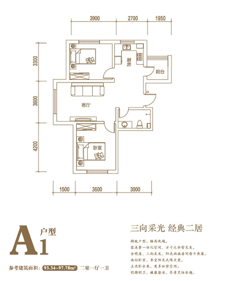 2室1厅1卫-A1-建面93.34-97.78㎡两居