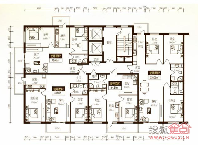 2室1厅1卫-汇龙裕景C户型2室1厅1卫80.66㎡