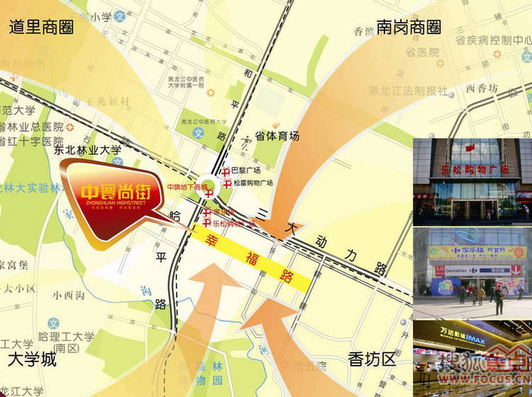 业内有一句名言:投资商业房地产,排名前列要素是地段、第二要素是地段,第三要素还是地段。地段决定了商铺的性价比、商铺的客流量及对消费群体的吸引力。项目地处动力最繁华的乐松商圈的黄金位置,是新老商圈的交汇处,项目周边不仅有区域人流较大的公交车路线,同时这里也是动力经济、企事业单位、高校、商业中心所在地,周边遍布着哈电、哈锅大型国企事业单位,商业有乐松广场、松雷商业、中旗地下商业等,高校有中医药大学、林业大学等省级高校,随着项目地铁规划,未来3、4号线也座落于此,该项目将为乐松商圈再添一处新亮点。这里日客流量在10万人次左右,便捷的交通,旺盛的人流为中寰尚街时尚生活地下购物街区的繁荣和美好未来提供了良好的发展环境。。