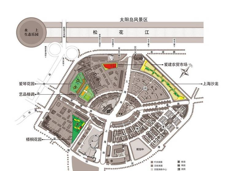 商业:上海沙龙、卓展购物中心、月星家居、居然之家、道里菜市场(爱建店)、汇丽美食广场、中环广场