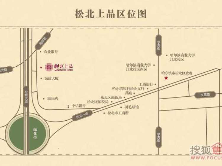 松北上品位于哈尔滨市松北区松北大道与世茂大道交汇处,周边自然景观丰富,交通便利,近距商业项目及大学教育核心。