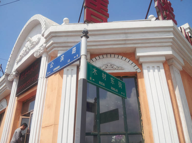 驾车沿公滨路前行,经过木材街交口(农业大学正门入口)前行,下一个街口即为木材东街与公滨路交口。