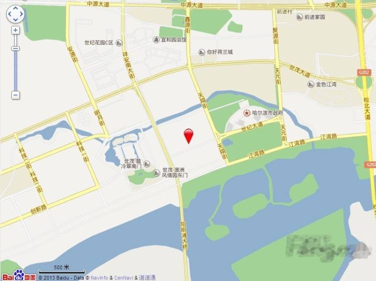 市区行至公路大桥,右转进入松北大道,朝金河湾湿地方向,靠右行驶,由环岛走第3出口进入世茂大道,左转进入天元街,由环岛走第1出口进入世纪大道,由环岛走第3出口进入天翔街,右转行驶330米,到达终点