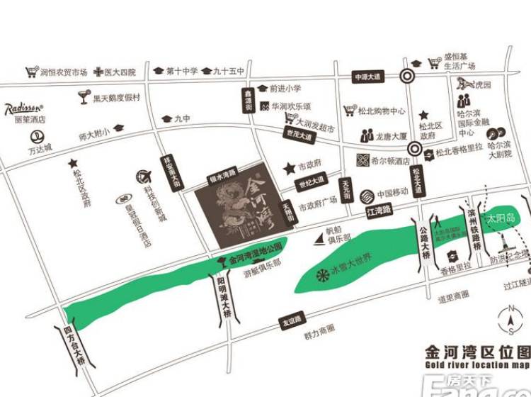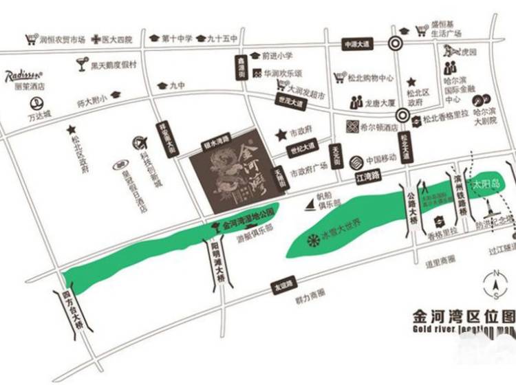 休闲旅游配套:太阳岛、东北虎林园、冰雪大世界、金河湾湿地公园、哈尔滨大剧院、黑天鹅度假村;