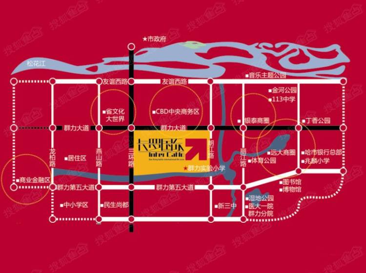 宝融卡罗国际项目位于群力东区——西三环、群力大道、朗江路及规划水系的围合处。