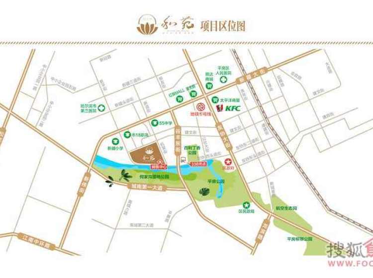 和苑项目地处由建文街、机装街、新平街与何家沟规划路围合处,位于平房老城区的西南南侧,紧邻商业中心。距红旗MALL、太平洋、顺达等购物中心,步行即可前往。南邻何家沟公园。 项目规划占地6.2万平方米,总建筑面积26.5万平方米,项目由16栋板式小高层组成,一期销售的8栋现在已经是现房段。面积从50多米到120多米,采用大量、成熟先进的建筑科技,如外墙保温系统、双色共挤三层中空玻璃等等。9#、10#楼的北侧是运动休闲广场区,建有羽毛球场、乒乓球场、景观广场等;南侧为绿化休闲活动区,配有景观长廊、凉亭、雕塑小品和休闲长椅等。在16#、15#之间为儿童游乐区,设有滑梯、木马、太空球等众多安全且趣味性强的娱乐设施。 和苑采用了人车分流的人性化设计理念,人车有独立的行进路线,车辆进入小区后,直接进入地下停车场。正在建设的公交车始末站就在小区的后侧,为平房区的公交枢纽中心,出行方便。小区聘请知名的物业顾问管理公司管理。24红外电子巡更系统,智能化安防系统,包括周边防逾越系统,无死角监控系统,门禁系统,消防报警系统闭路监控系统,在保障安全的同时使居住不受外部嘈杂环境影响,得以安居乐业。小区内还配有会所,在会所内设有体育室、阅览室、活动中心等。小区内的幼儿园将引进知名的教育机构,新疆小学、百利小学、55中学、大学城环伺左右。。