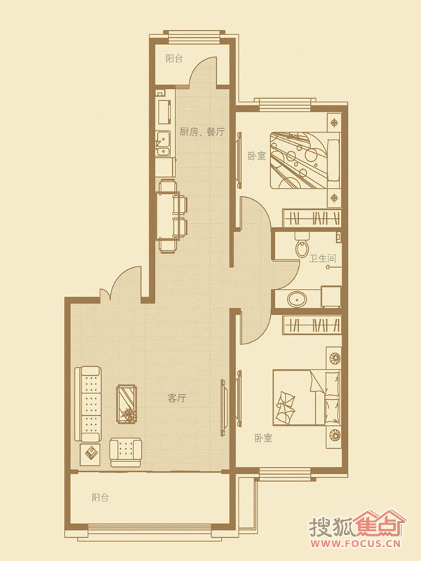 2室2厅1卫-g2户型2室2厅1卫105.50㎡