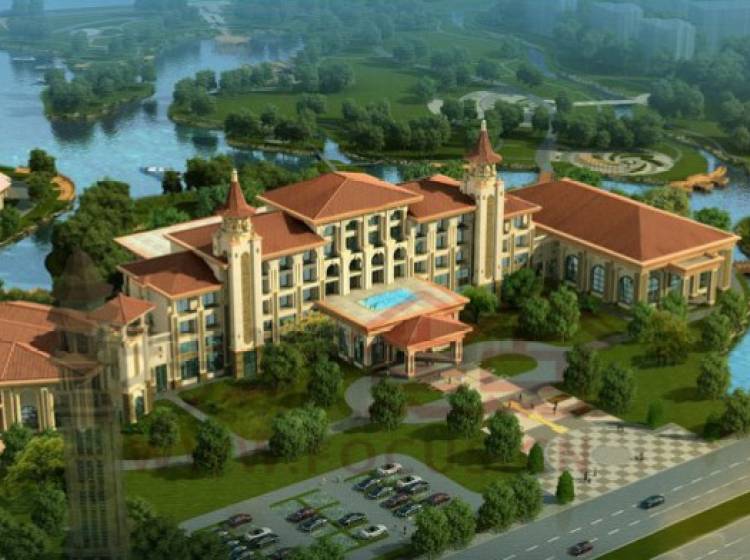 6、酒店岛上的半岛酒店总建筑面积1.8万平米,本酒店采用园林化的新古典主义建筑风格,设计了一座可供500人同时进餐的庆典大堂,并将提供各种会所式服务(包括咖啡厅、茶艺厅、西餐厅、会议室、酒吧等等),秦皇半岛营销中心也设置在半岛酒店内。