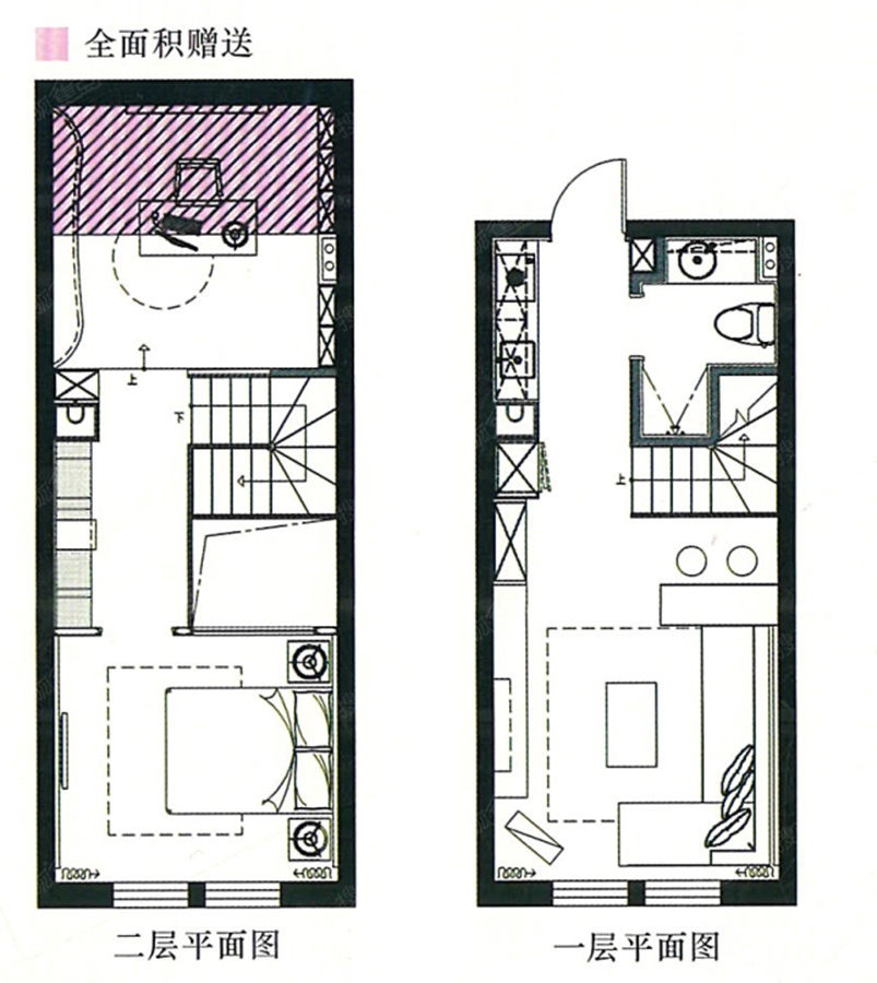 2室1厅1卫-建筑面积37平米/使用面积55平米LOFT