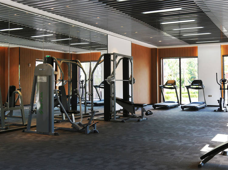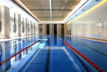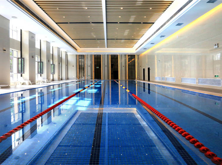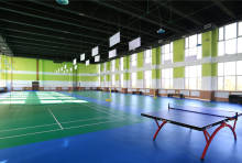 一层设有游泳馆、健身房和瑜伽室;二层设有棋牌室和台球馆;三层是大型恒温羽毛球场。