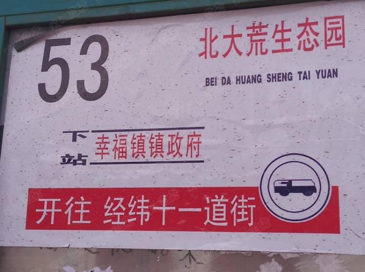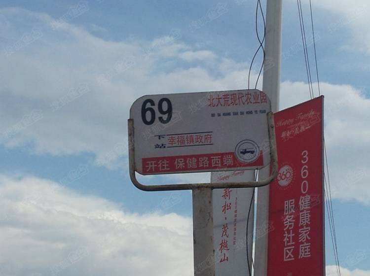 340路、368路、377路幸福镇下车;69路、353路幸福镇政府下车;53路幸福市场下车;地铁2号线气象台站。