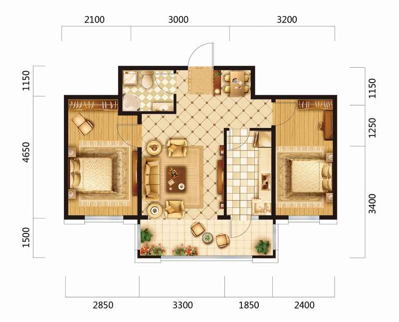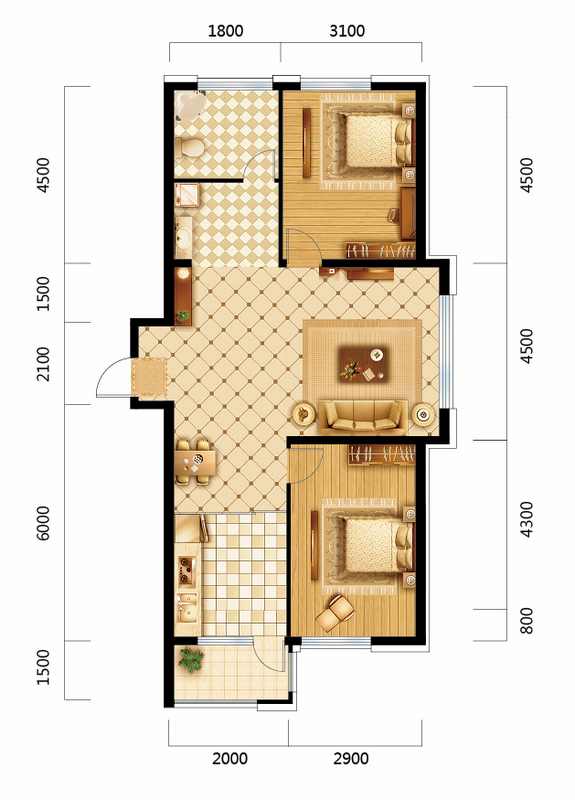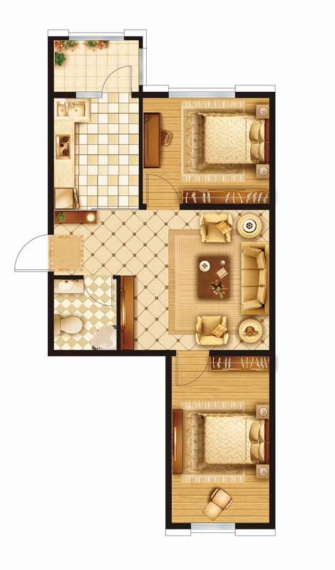 2室1厅1卫-A1、A3、A5、A6号楼F户型