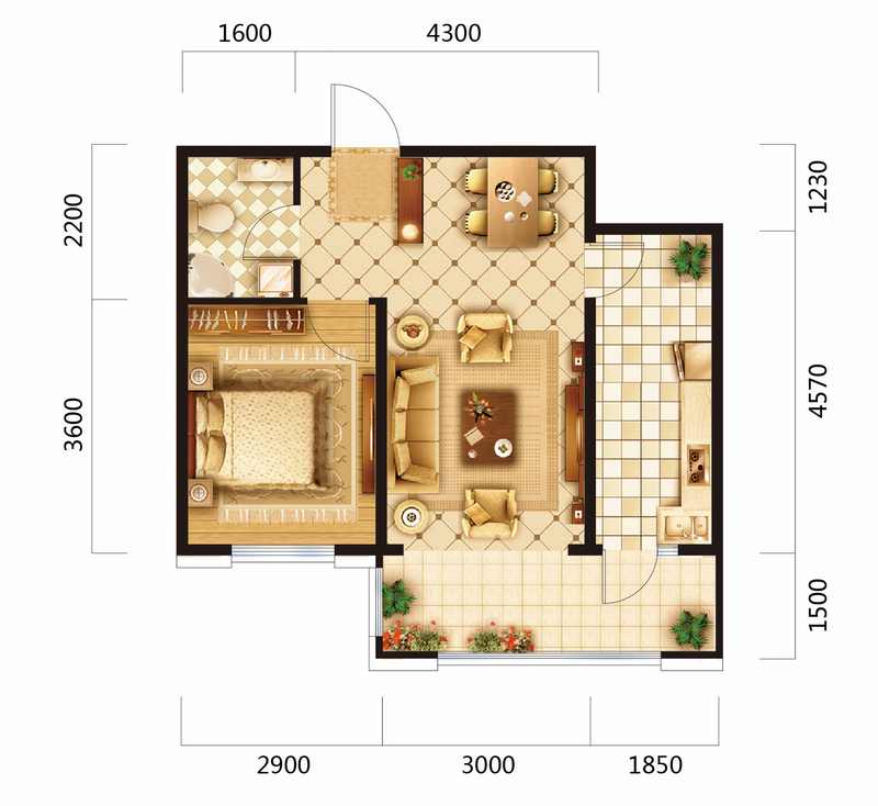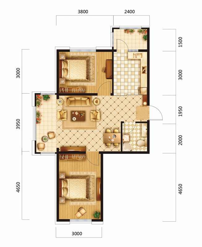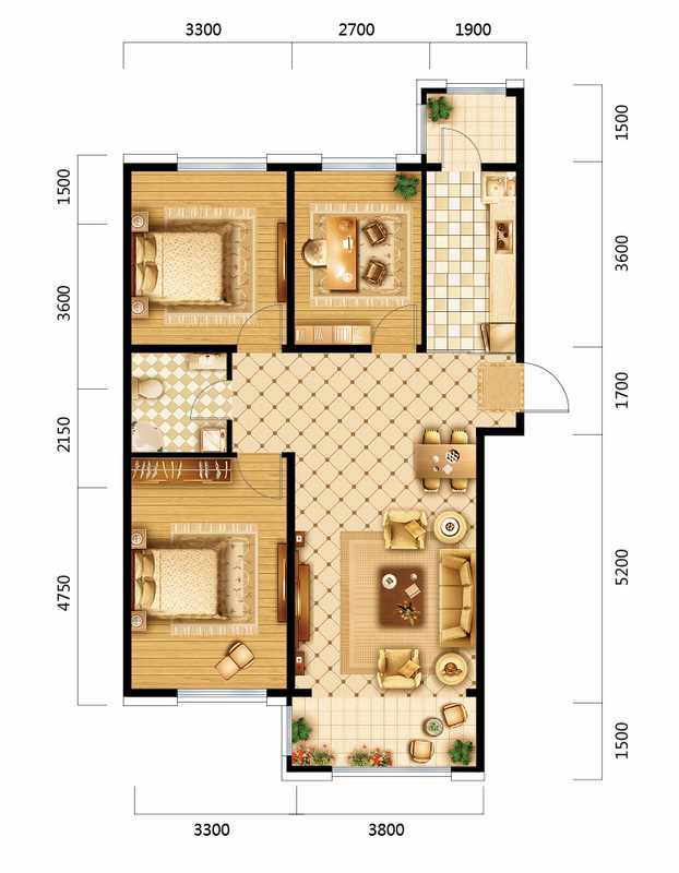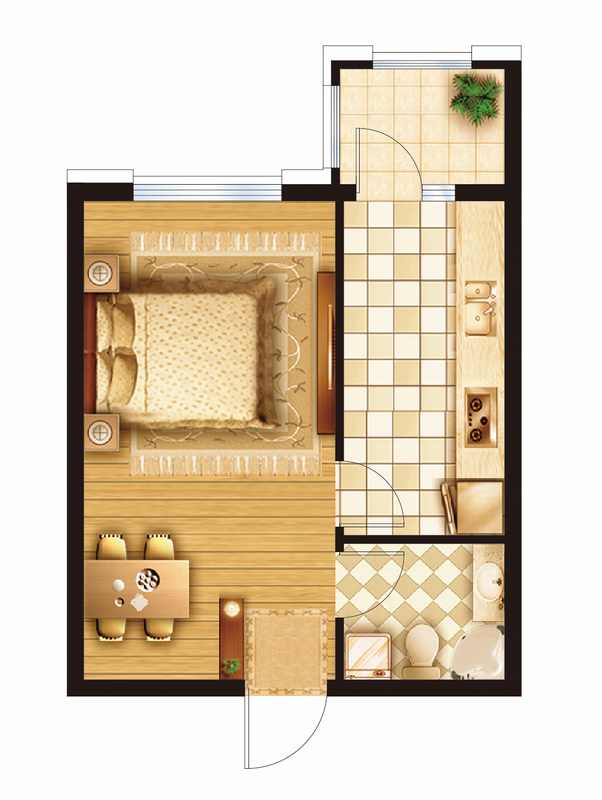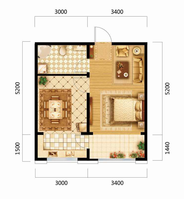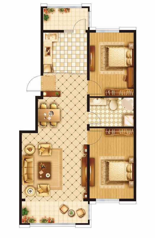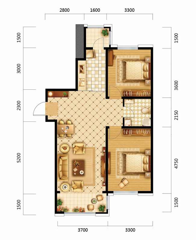 2室1厅1卫-A1、A3、A5、A6、A7号楼D户型