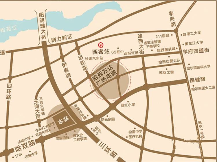商业:哈西万达广场 红博西城红场 服装城商业区 中央红超市