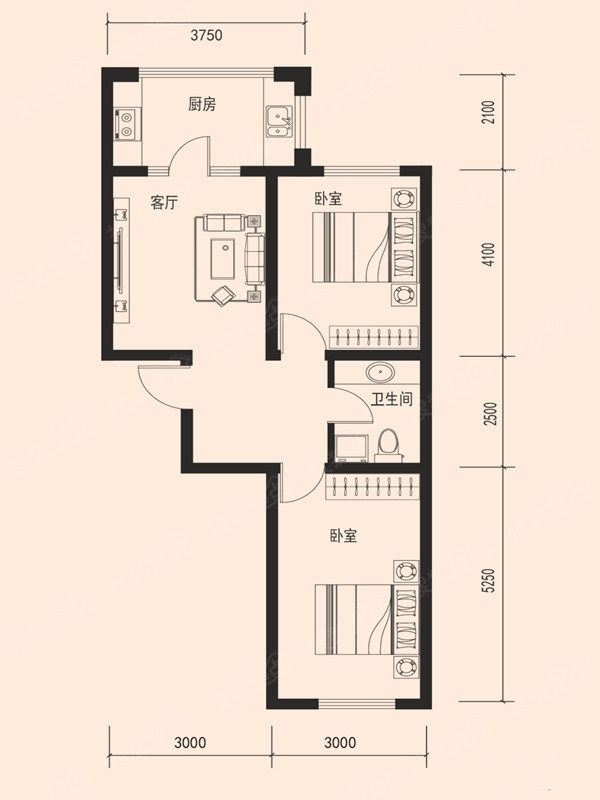 2室1厅1卫-2号楼B