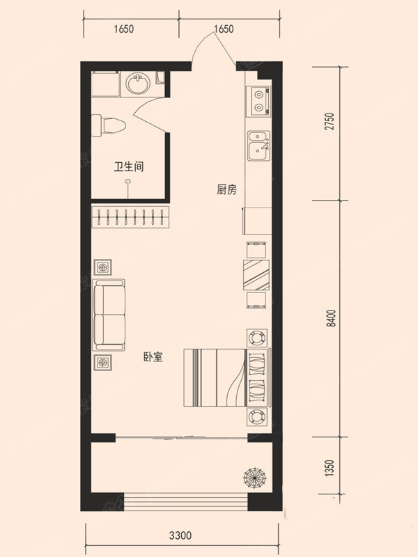 1室1卫-26平米一居