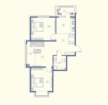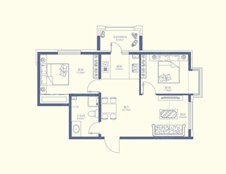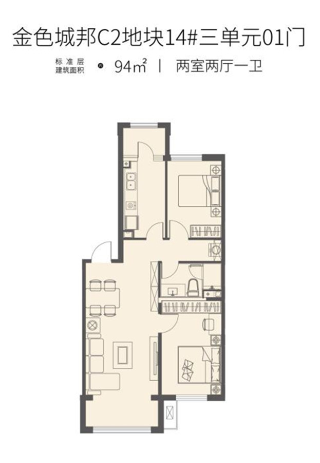 2室2厅1卫-建面94㎡两室两厅