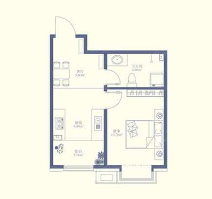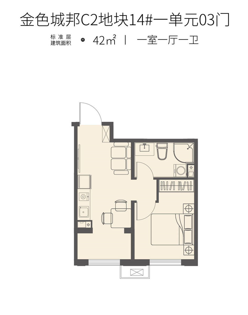 1室1厅1卫-建筑面积42㎡一室一厅