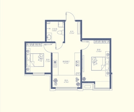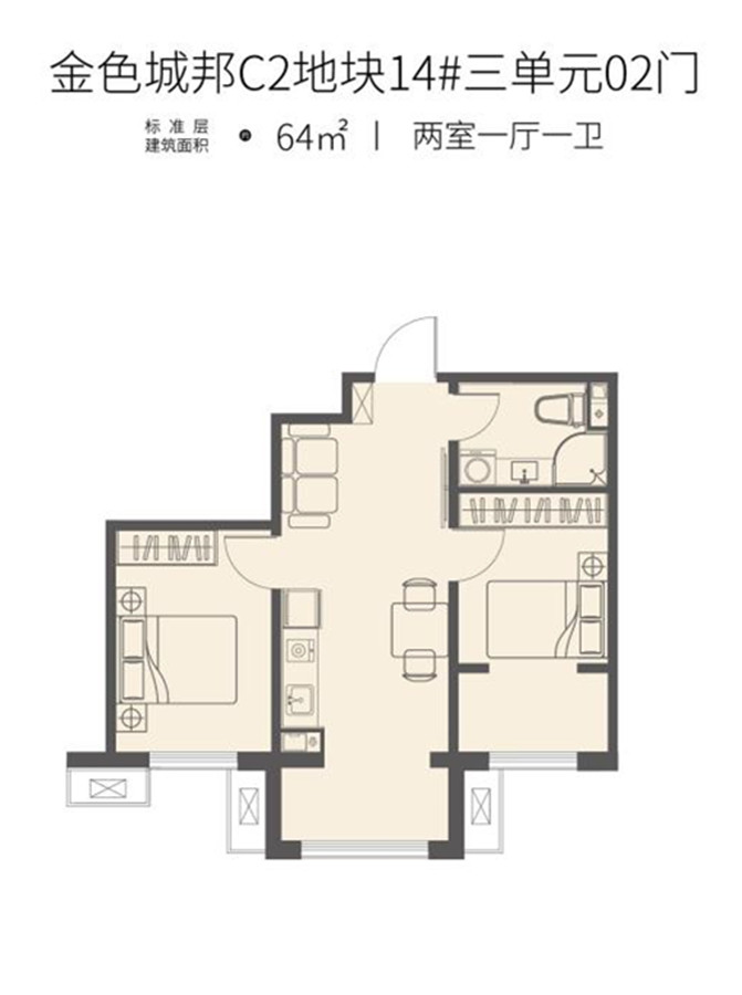 2室1厅1卫-建筑面积64㎡两室一厅